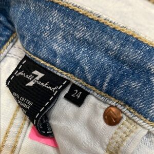 Experience the timeless appeal of these blue straight leg jeans from 7 For All Mankind. Crafted from high-quality denim, they offer a comfortable fit that effortlessly enhances your everyday style. Perfect for any occasion, these jeans are a must-have addition to your wardrobe.