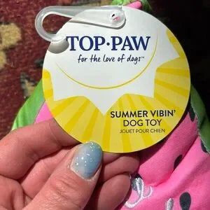Bright and fun watermelon slice dog toy. Features 'So Sweet' embroidery. Perfect for any pup looking to have some summer fun.