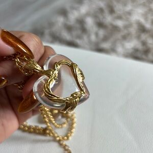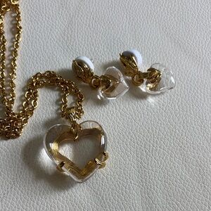 Elegant gold and clear heart necklace and earrings set, perfect for adding a touch of sophistication to any outfit. New never worn gold plated jewelry