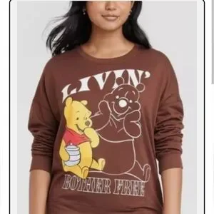 Cozy brown sweatshirt featuring Winnie the Pooh graphic. Perfect for casual wear. Some peeling.