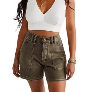 We The Free People Day Camp Cargo Shorts Green Khaki Utility Size 26 Gorpcore