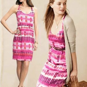 $129 Banana Republic Twist Strap Multi Color Silk Dress With Pockets Sz 6