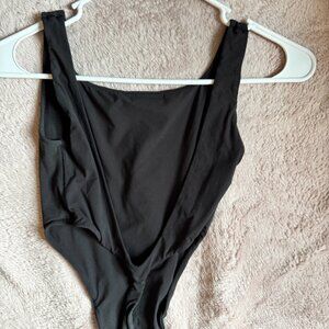 SKIMS Black High-Cut Bodysuit | Size XS | Open Back Sculpting Fit