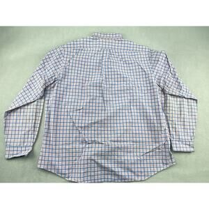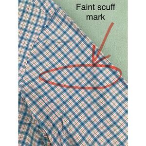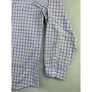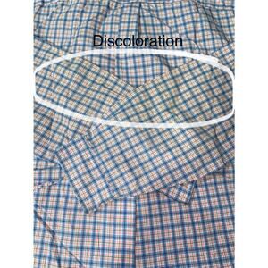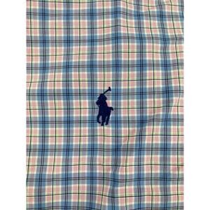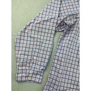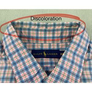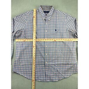 (Please see all photos! Has some imperfections) Elevate your casual wardrobe with this classic Ralph Lauren button-down shirt. The blue plaid pattern and collared neckline give it a timeless look, while the long sleeves and button closure make it perfect for cooler weather. Made of comfortable cotton material, this shirt is machine washable for easy care.