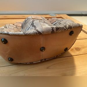 Stylish hobo bag with a snakeskin pattern. Features sturdy handles and detailed stitching. Perfect for everyday use.