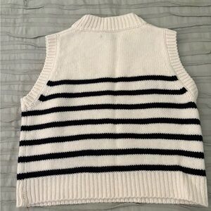 Chic sweater vest with bold stripes. Perfect for layering. Stylish and comfortable.