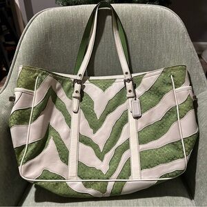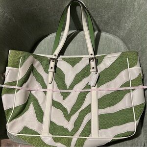 Coach Green & White Zebra Stripe Design Tote Bag Vintage Coach Bag Coach Handbag