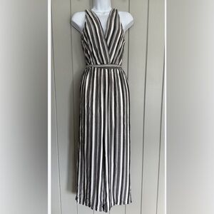 Amanda Uprichard Monochrome Striped wide leg belted jumpsuit size small