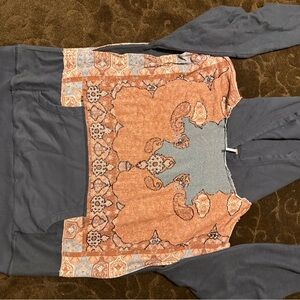 Stylish hoodie with intricate red pattern and sequence. Comfortable fit. Perfect for casual wear.
