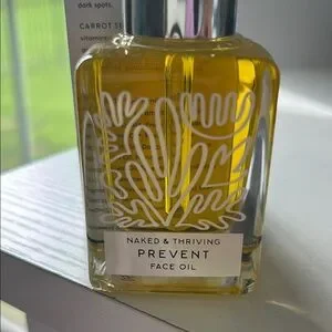 Naked & Thriving Prevent Anti-Aging Face Oil. Nourishes and fortifies against the appearance of aging while providing a protective barrier over the skin without clogging pores. This ultra effective, lightweight oil absorbs quickly into the skin and provides long lasting moisture.
