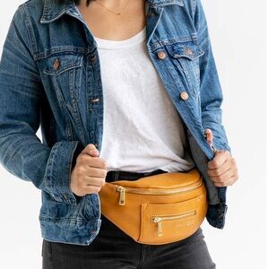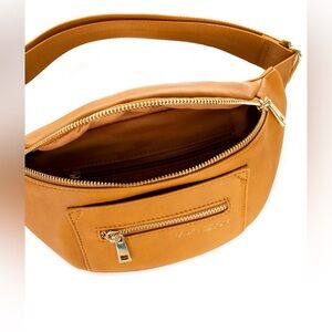 Premium Fanny Pack Made Of Faux Leather With Adjustable Nylon Belt - For Keeping Phone, Wallet, Keys, Lipstick - Great For Travel, Hiking, and Running (Honey)