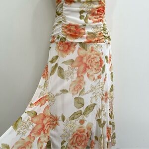 Vintage Y2K whimsical fairy orange floral drop waist midi dress semi sheer large in excellent condition, no flaws. I love this dress!! This is the perfect example of a true Y2K style that is trending. The mannequin is a size 6 for fit reference.