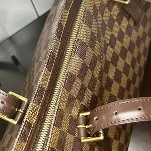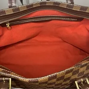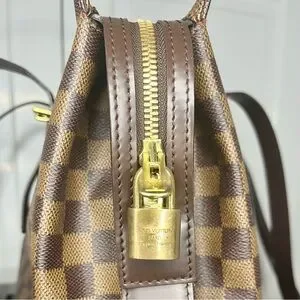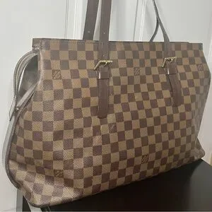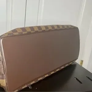 Elegant Louis Vuitton tote. Classic checkered pattern. Durable leather straps. Perfect for everyday use.