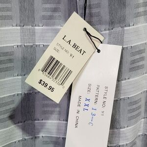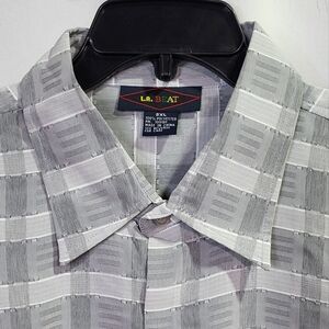 L.A.BEAT NWT Light Gray Windowpane Collared Short Sleeve Dress Shirt Size 2XL
