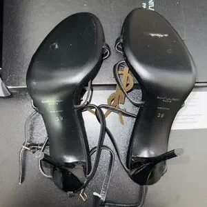 Yves Saint Laurent Black and Gold Heels with Stiletto Design