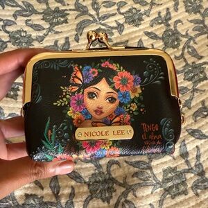Experience the allure of the Nicole Lee Black Clutch, featuring a striking artistic design with vibrant floral patterns. This elegant accessory is crafted with a structured rectangular shape and adorned with gold-tone hardware, making it a standout piece for any occasion. Its durable material and glossy finish ensure both style and longevity.