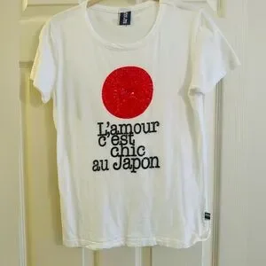 VINTAGE Jean Paul Gaultier White Tee with Red sequined Graphic