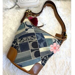y2k Rare COACH Denim Leather Patchwork Shoulder Bag Crossbody