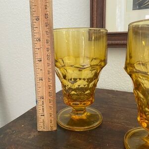 Vintage Midcentury 1950s Anchor Hocking Amber Georgian Honeycomb Footed Goblets
