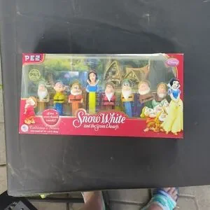 NWT. Collector's series PEZ set of Snow White and the Seven Dwarfs with a storybook included. Has a small scuffed area on the right upper corner as shown in picture number 3.