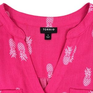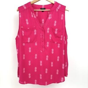 Torrid Harper Pink Pineapples Sleeveless Pullover Gauze Blouse Size 1 (XL) in excellent preowned condition
