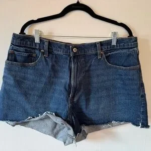 These Abercrombie & Fitch jean shorts feature a classic blue hue with a medium wash, offering a timeless denim look. The cut-off design with raw, frayed edges adds a casual flair, perfect for everyday wear. Enjoy the comfort and style of these versatile shorts, ideal for any casual occasion.