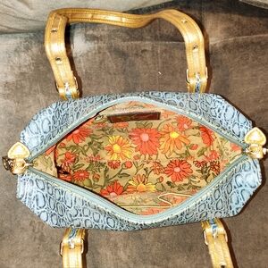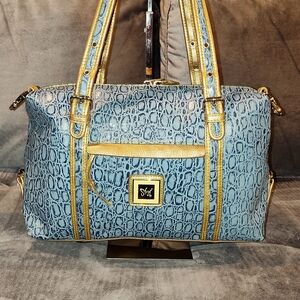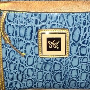 Sharif Blue and Gold Embossed Shoulder Bag