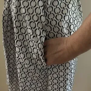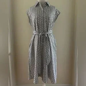 CUTE White w/Black/Brown Dress •Buttons down front •Belt tie •Not Lined •100%Polyester •Brand:Apt.9 •Size:L (UA:21”; L:42”:W:22”)