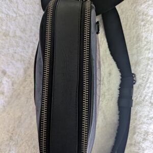 This Coach belt bag combines the elegance of black and brown tones with the brand's iconic design. Perfect for hands-free convenience, it offers a stylish and practical solution for carrying essentials. The sleek design ensures it complements any outfit effortlessly.