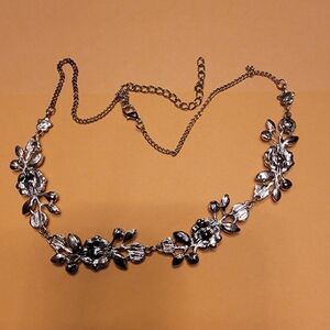 Preowned Rhinestone Flower Vine and Silvertone Necklace
