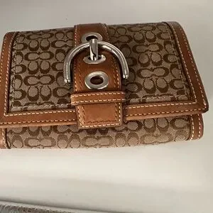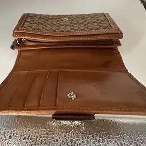Coach Brown Signature Wallet with Leather Trim and Silver Hardware