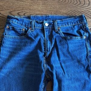 Experience the timeless appeal of Levi's 505 straight blue jeans, crafted for comfort and style. These jeans feature a classic medium blue wash, perfect for any casual occasion. Enjoy the signature Levi's quality with a relaxed fit that offers both ease and versatility. Size 32x34. Great condition!