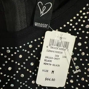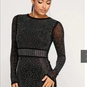 Windsor Black and Silver Embellished Long Sleeve Bodycon Dress NWT