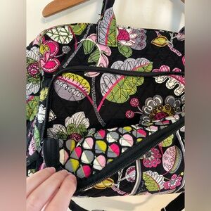 Vera Bradley weekender bag in like new condition. The perfect bag for a weekend getaway - has a slot to hook onto carry on luggage handle, lots of pockets, and a removable strap.