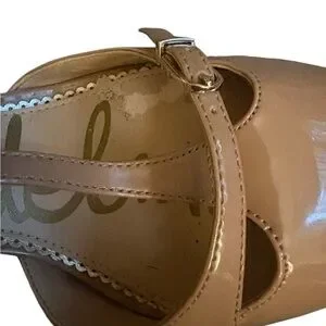 Sam Edelman Nude Patent Leather T-Strap 4” Heels. Size 8.5