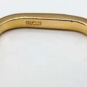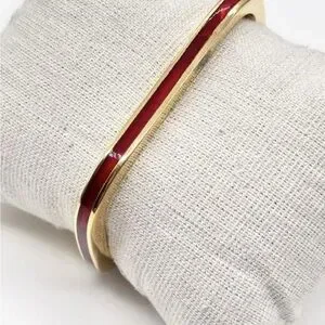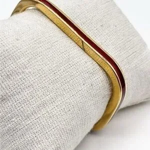 This exquisite Gucci bracelet showcases a harmonious blend of gold and red enamel, creating a striking two-tone effect. The bracelet's minimalist design features clean lines and a polished finish, making it a timeless accessory. Its continuous pattern ensures visual interest from every angle, embodying elegance and sophistication.