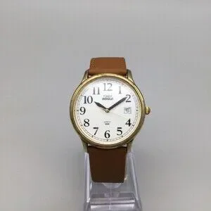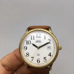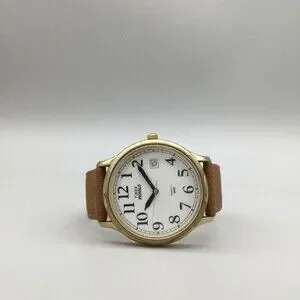 Vtg Timex Indiglo Watch Men 35mm Gold Tone Date Leather Band New Battery