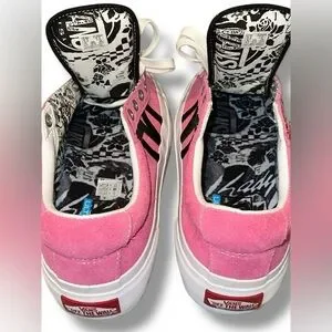Stylish pink suede Vans with black accents and a bit of a platform lift. Comfortable and trendy design. Perfect for casual wear. New without box. Size 7 women’s or 5.5 men’s.