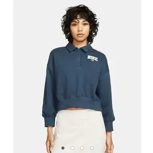 Nike Y2K Phoenix Fleece Retro crop quarter zip polo top in navy M