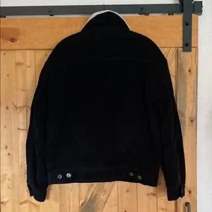 Stylish black jacket with soft sherpa lining. Perfect for layering.