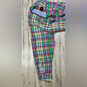The Tailorbyrd Men's Dress Shirt in 4XL is a stylish and versatile addition to any man's wardrobe. This long-sleeved button-up shirt features a classic spread collar and a woven fabric made of 100% cotton. The green and blue plaid pattern adds a touch of color and personality to the shirt, making it suitable for various occasions including parties, casual outings, and business meetings. With its easy-care design and all-season appeal, this shirt is perfect for the modern man who values both style and comfort.