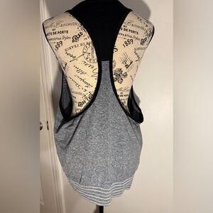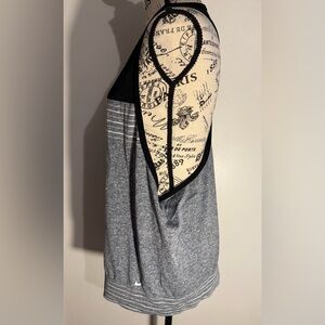 Nike athletic tank top with black and gray stripes. Dri-FIT technology for comfort, breezy and flowy.