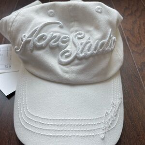 Elegant white cap with Acne Studios branding. Ideal for everyday style.