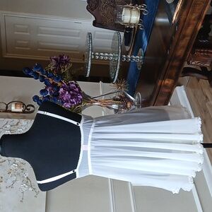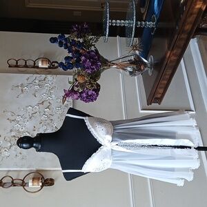 Soft And Stretchy White Fabric, Lace-up Open Front, Padded Push-up Cups With Dazzling Rhinestones, Adjustable Straps And Sexy Mini Length With Ruffle Hem