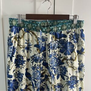 Sundance Cropped Leia Pants Floral Blue Relaxed Lounge Bohemian Peacock size SP