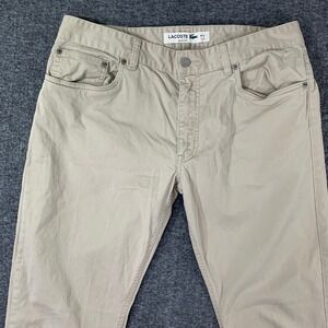 Lacoste Chino Pants Men 36x33 Beige Trousers Modern Slacks Cotton Spandex