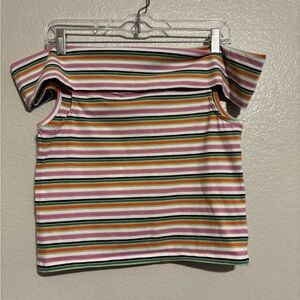 NWT Maeve Anthropologie Off-The-Shoulder Shirt Blouse Top Striped Printed Size M