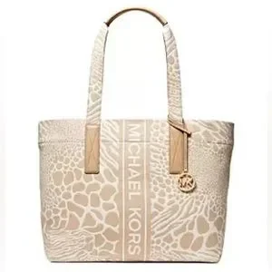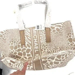 Stylish Michael Kors tote. Cream and tan animal print. Spacious interior. Perfect for everyday use.