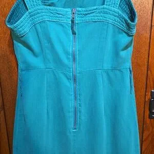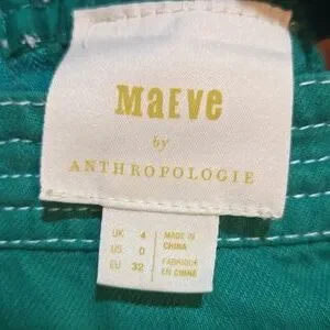 Kelly green sundress with wide straps and non-functioning white buttons in an offset pattern in excellent condition by Maeve. Size 4, visible zipper on the back. It has threaded belt loops, but a belt was not included. I never wore this!