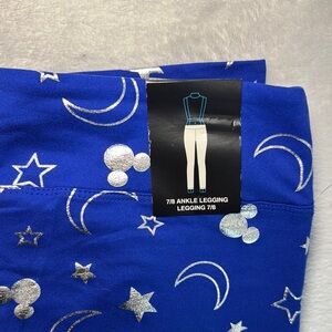 Stylish Disney leggings. Features silver stars and Mickey Mouse icons. Comfortable and stretchy.